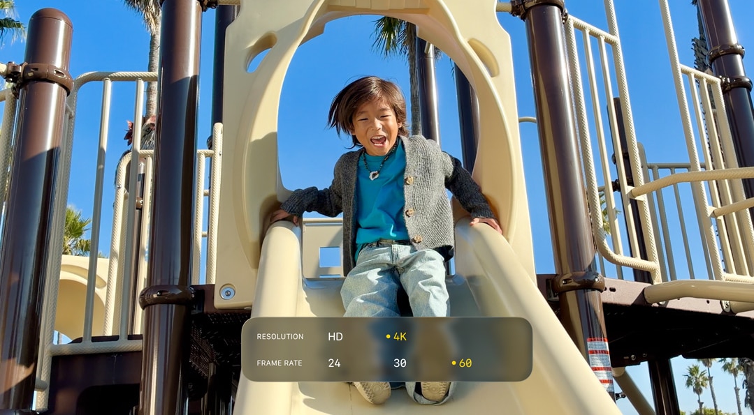 Inregistrati videoclipuri 4K 60 fps de calitate cinematografica in Dolby Vision, cu reducere automata a zgomotului produs de vant. Utilizati Audio Mix pentru a regla modul in care suna vocile in videoclipurile dvs. Si filmati mai multe scene intr-o singura filmare utilizand functiile de pauza si inregistrare.