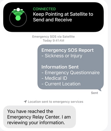 Daca incerci sa suni la 911, dar nu ai semnal celular sau Wi-Fi, poti folosi iPhone-ul pentru a trimite un mesaj serviciilor de urgenta prin satelit. |